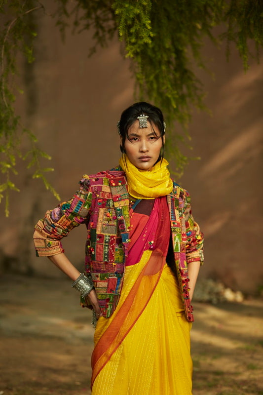Patchwork Saree With Embroidered Blouse
